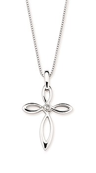 Diva Diamonds® Cross Pendant In Sterling Silver With .01 Ct. Diamond With 18" Box Chain (Adjustable To 16") And Lobster Claw Clasp