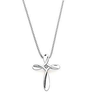 Diva Diamonds® Cross Pendant In Sterling Silver With .01 Ct. Diamond With 18" Box Chain (Adjustable To 16") And Lobster Claw Clasp