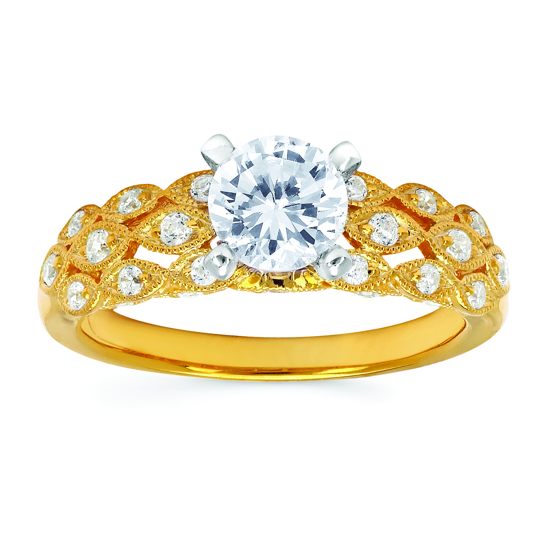 Engagement Ring Forever ElegantĀ® 1/3 Ctw. Diamond Semi Mount shown with 1 Ct. Round Center Diamond in 14K Gold