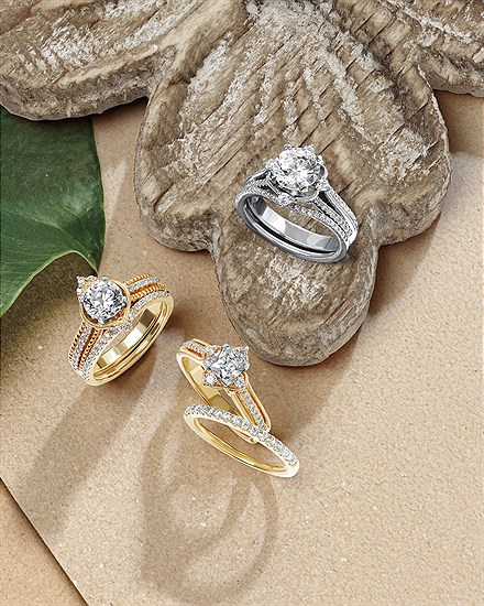 Engagement Ring Forever ElegantĀ® 1/3 Ctw. Diamond Semi Mount shown with 1 3/4 Ct. Round Center Diamond in 14K Gold