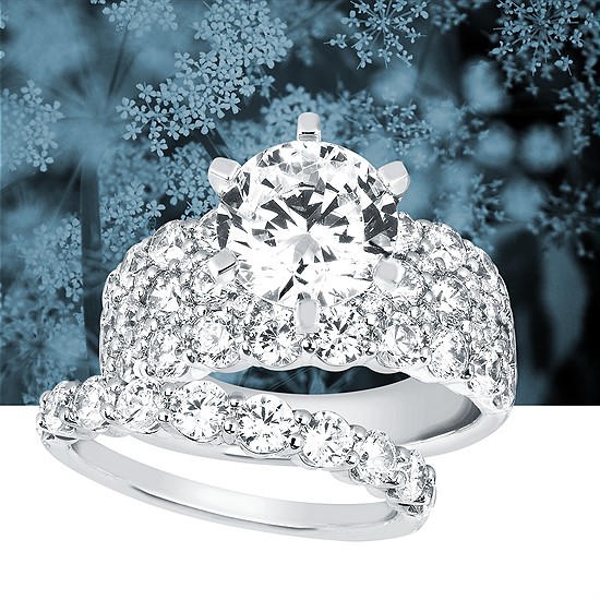 Engagement Ring Classic Bridal: 2 1/2 Ctw. Diamond Semi Mount shown with 2.50 Ct. Round Center Diamond in 14K Gold