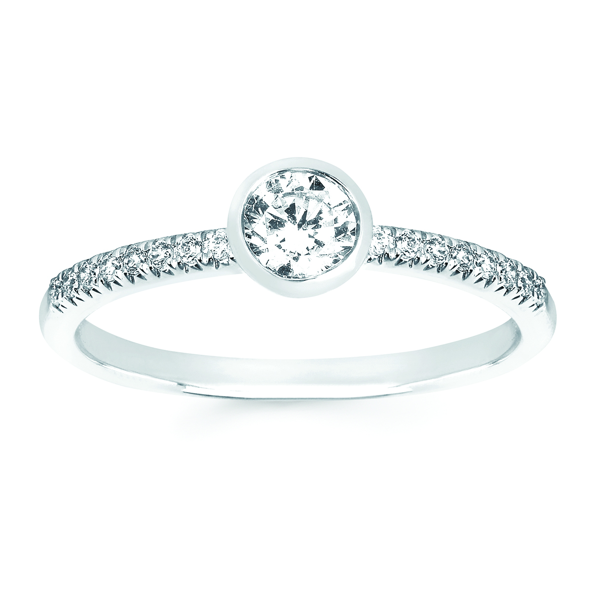 Engagement Ring Modern: 1/10 Ctw. Diamond Semi Mount Shown with 1/3 Round Center Diamond in 14K Gold