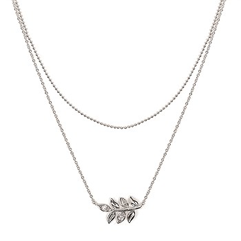 0.06 Ctw. Diamond Double Tier Leaf Necklace In Sterling Silver.